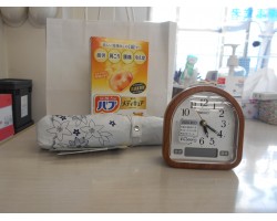 たくさん(時計・かさ・入浴剤)いただき、ありがとうございます。今日から目覚まし時計を置いて寝るのが楽しみです。