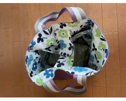 桜の季節に私がハマってしまったのは「ミシン」です。マスク不足の時期に布マスクを作って以来、2年ぶりに出してきた「ミシン」先生(頼りになる居宅のお母さん)に教えていただきながら、バックを2つ作りました。